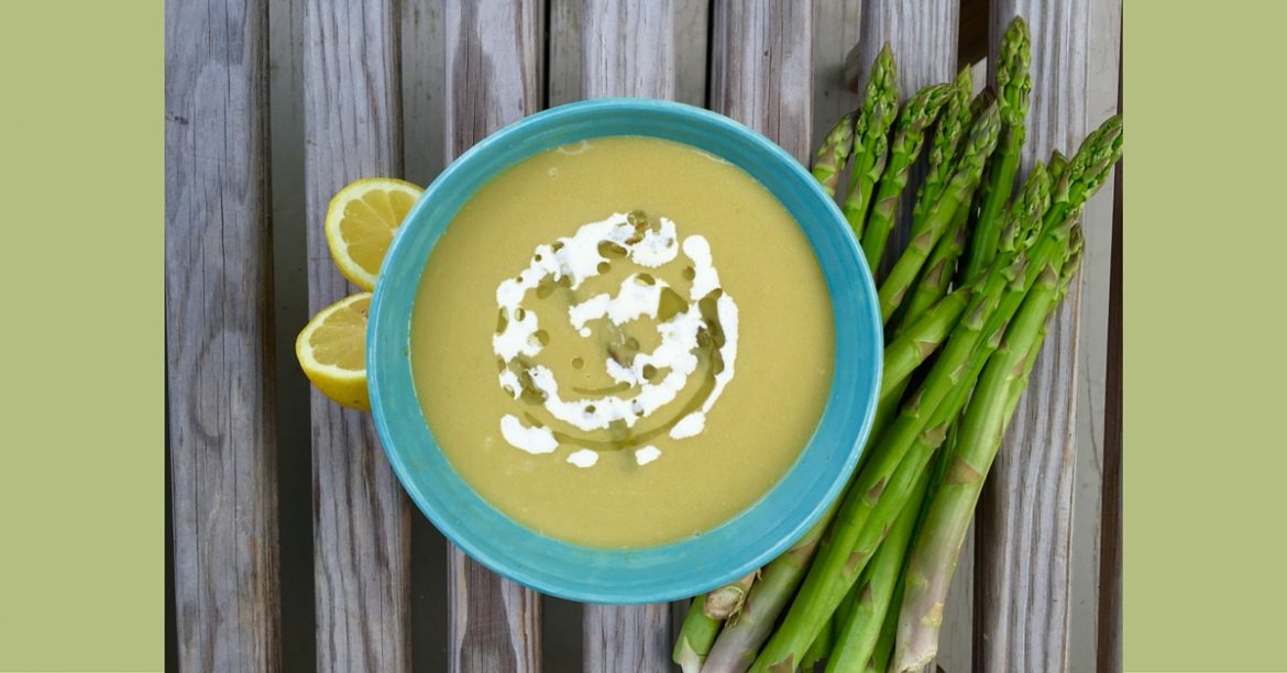 Asparagus season is one of my favorite times of year. Farmers markets are the best places for just-cut, farm to table asparagus. I have frozen it (without the asparagus tips for garnish) and heated it in cooler months. It still tastes wonderful, but chilled is the very best way of enjoying the fresh cut asparagus.