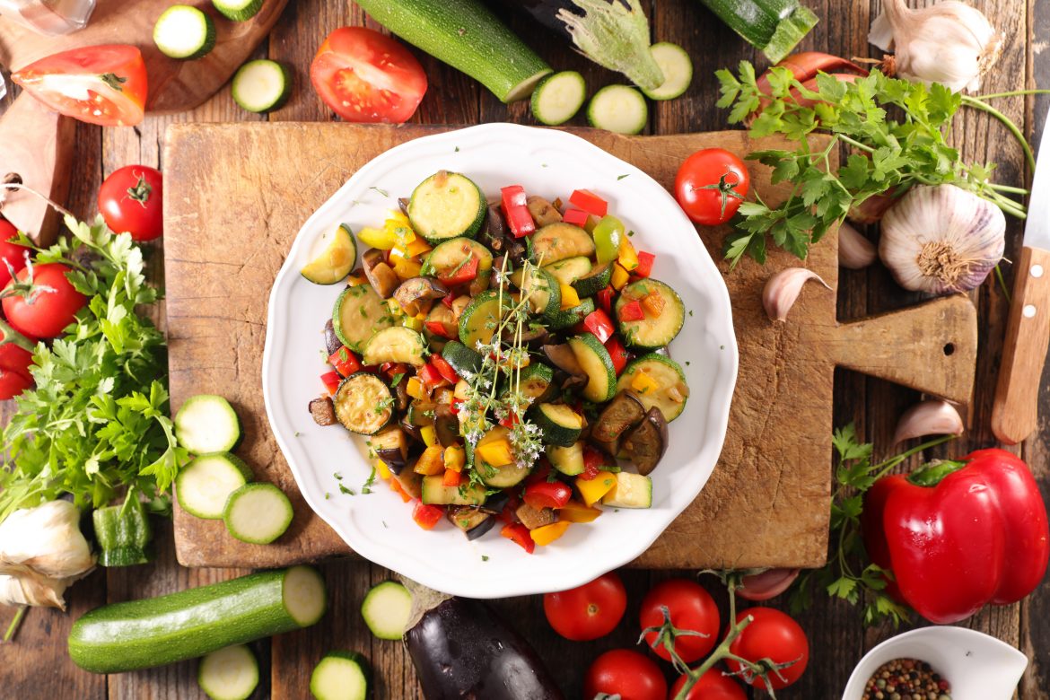 Make the most of the sweet cherry tomatoes and delicious summer veggies and herbs that are around right now and cook up a big batch of ratatouille. Perfect for a light lunch or main course side, plus it freezes well!