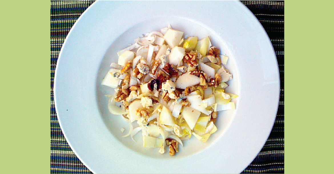 The simplest salad ever. A perfect combination of crunchy endive and walnuts, with sweet, soft pears to balance the slightly bitter, sharp taste of the endives.