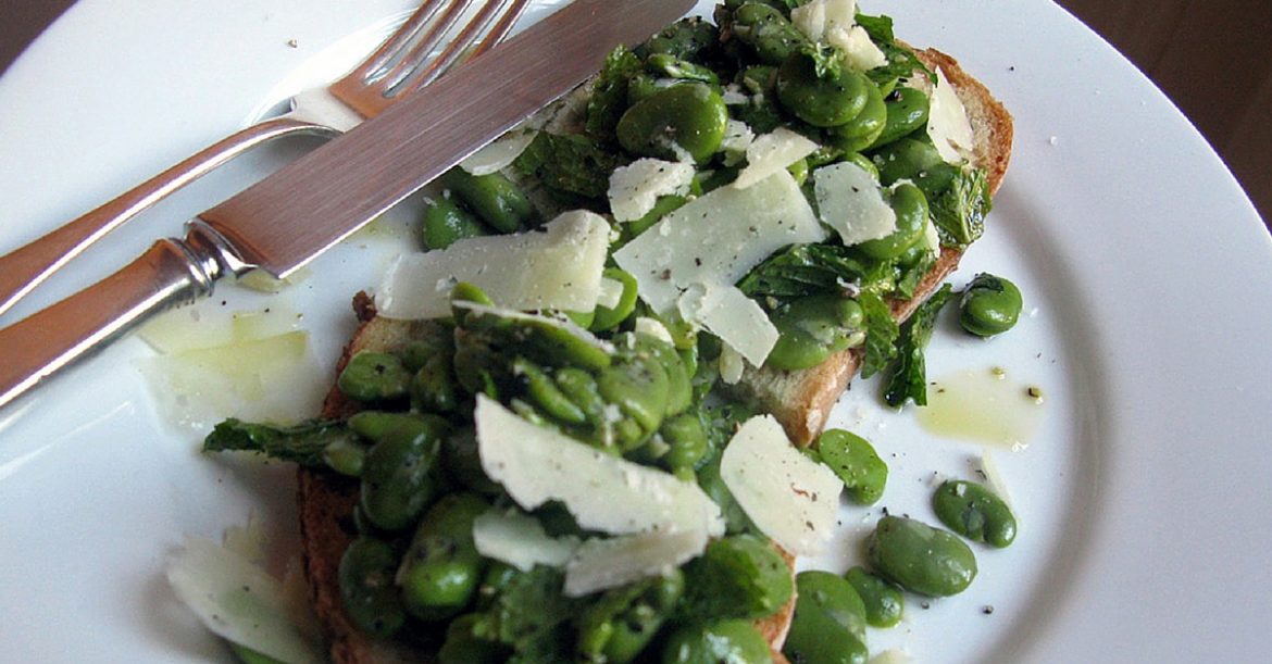 This is my new favorite bruschetta! I just love fava beans and this recipes works just as well with fresh or frozen.