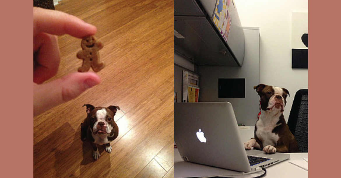 Funny story: Chowder thinks he lives in the suburbs with a backyard, but is actually in a 450 sq ft Hoboken apartment. Regardless, he took a large treat and instead of gnawing at it, proceeded to hide it in different corners of our place – under the coffee table, between storage bins, behind the toilet. Every time he realized that scratching at our hardwood floors did not conceal it, he would become frustrated and search for a new spot. Currently, the nomadic treat is located between my husband’s dress shirts.