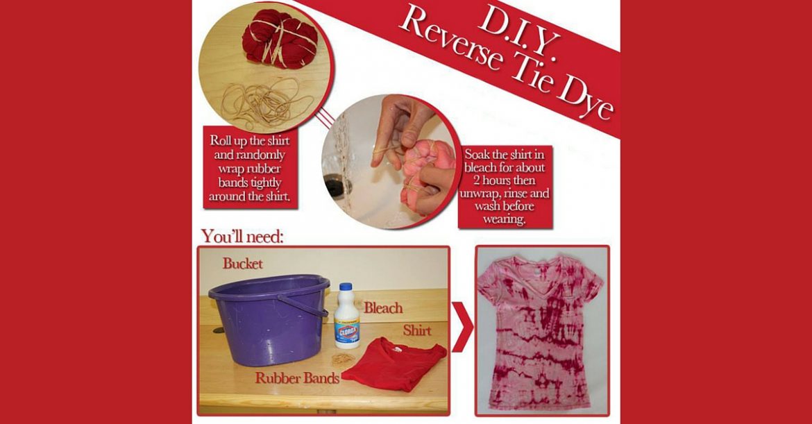 Last week my lovely fiancé decided he was going to help me do laundry – which was really nice until I realized he accidentally got some bleach on one of my favorite cotton tees. I know, the horror! I decided something had to be done to salvage my beloved tee and finally settled on a reverse tie-dye technique to mix in with the bleach already on the shirt. Below is my process and how it came out.