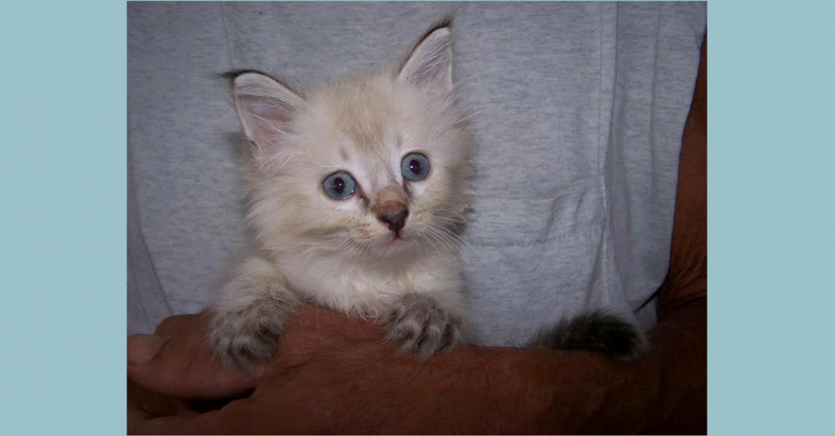 Breed: Siamese mix-he is a rescue kitten found in an abandoned building at 4 weeks